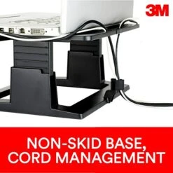 Cable management feature keeps cords organized. Compatible with docking stations. Supports up to 20 lbs.