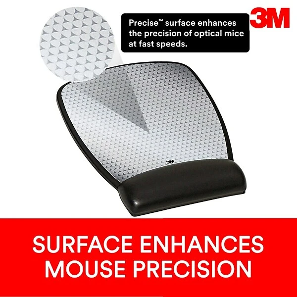 3M™ Precise Mouse Pad with Gel Wrist Rest MW309LE enhanced performance and battery savings, soothing gel for optimal comfort