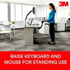 3M™ Adjustable Keyboard Trays help place your keyboard and mouse at proper level to increase comfort and productivity. AKT180LE has an sit/stand easy adjust arm just tilt platform, adjust and release to lock in place. Adjusts height to 10″ above mounting surface and 4″ below mounting surface allowing you to alternate between sitting and standing positions.