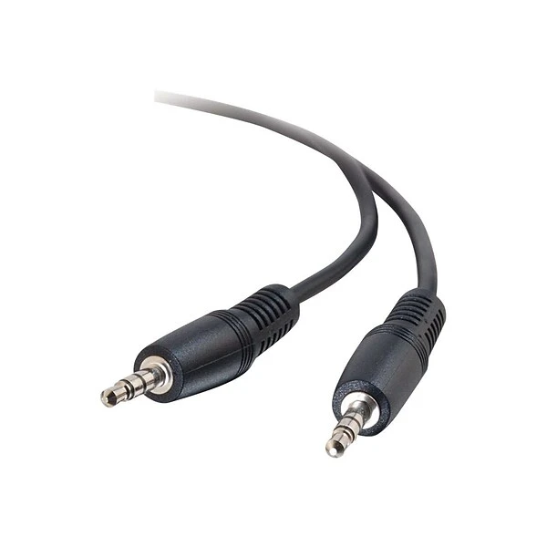 The C2G® 6′ male/male stereo audio cable is perfect for connecting audio devices. It easily connects a PC sound card, portable CD player or any mini-stereo audio device with 3.5 mm jacks to a multimedia speaker. It features two copper conductors and a braid shielded drain that prevents unwanted EMI/RFI interference. The fully molded nickel-plated connectors provide excellent strain relief for long lasting usage.