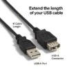- Extension cable extends an existing USB cable or device