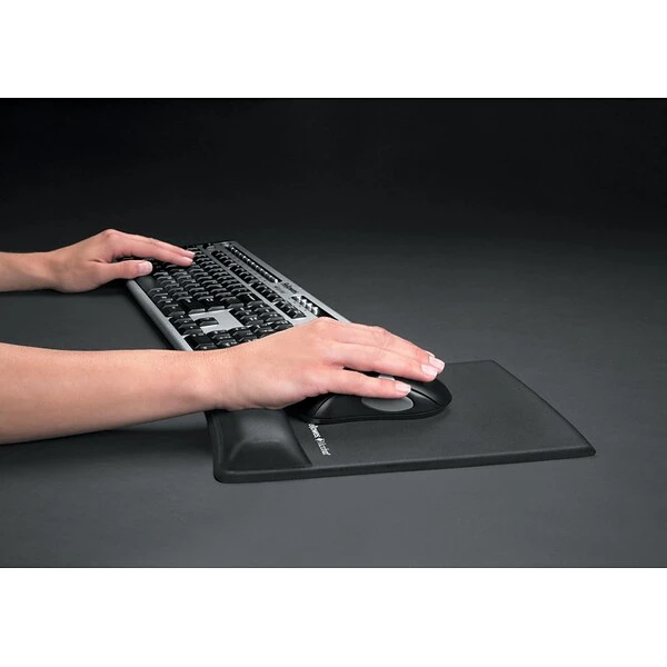 Crafted from jersey-knit fabric, this Fellowes wrist support offers a soft texture to help you feel more comfortable as you work. The breathable construction allows air to flow through the fabric, which works to prevent moisture from collecting on the wrist support and mouse pad.