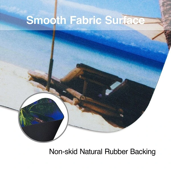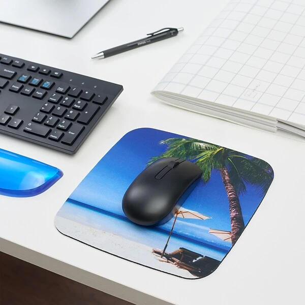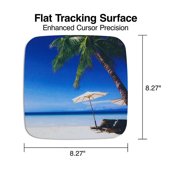 Bring a breath of fresh air to your home or office desk with this beach scene mouse pad. The nonslip backing means the pad stays firmly in place, while the colors are optical-mouse friendly. The soft material is comfortable to use, and the generous dimensions give you plenty of room to maneuver. This Staples mouse pad has a vibrant Beach Scene for an extra-cheerful addition to your desk.
