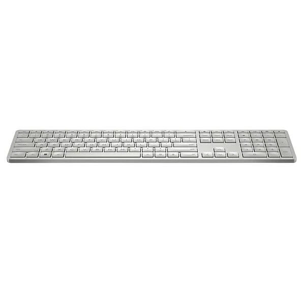 Customize your keyboard with HPAC, and reduce needless keystrokes by programming over 20 keys with shortcuts for your most used apps. Plus, you can customize the backlighting feature by turning it on or off, adjusting light intensity, as well as the sleep mode timer. Multiple connectivity options mean more flexibility. Connect up to three devices: two via Bluetooth and one via 2.4GHz USB Type-A dongle, and switch between devices using one button. Plus, you can easily pair peripherals to a Windows 10 PC in two steps using Microsoft Swift Pair. Smart features. Better typing experience. This keyboard quietly delivers comfortable typing consistency through higher key height, dished finger-shaped keys and soft return technology. Customizable smart sensors help adjust backlit keys based on your room lighting condition and turn on the backlight when you approach or off when not in use to save energy. The battery is rechargeable via a simple USB Type-C connection and lasts over six months. The HP 970 keyboard not only helps you be productive, but also helps the environment. HP worked hard to design a keyboard containing 20% postconsumer recycled materials, so you can feel good about your purchase.