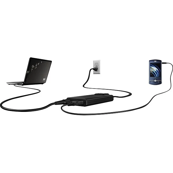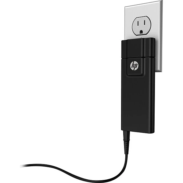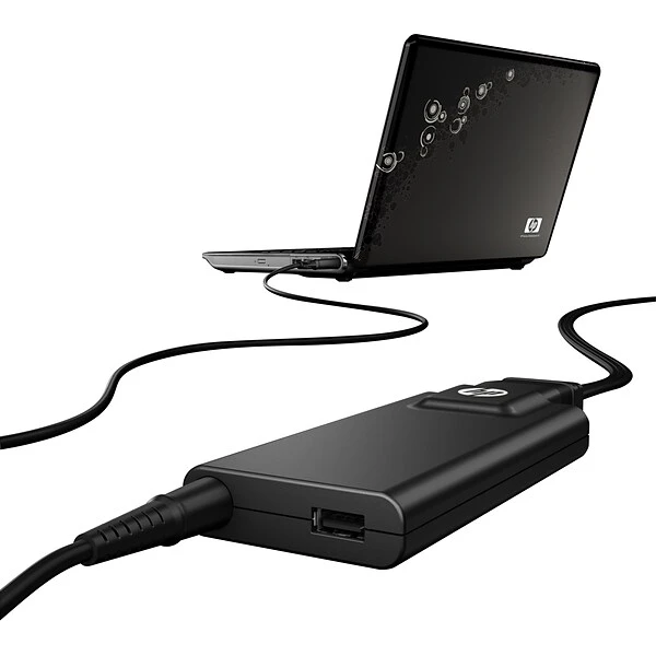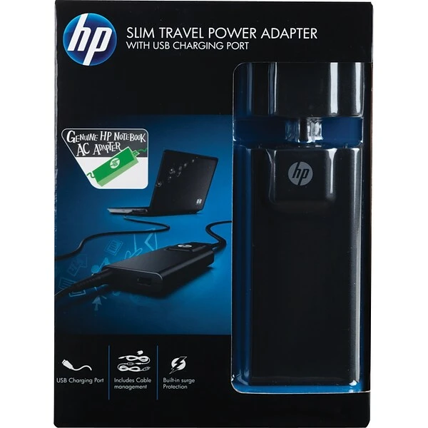 The ideal power adapter for people on the go. The HP 65W Slim AC Adapter includes multiple interchangeable tips all using a single detachable cable, HP’s Smart-pin energy saving technology, optional USB connection, and the reassurance of HP certification.Reduce mobile power complexity with the versatility of this thin and adaptable adapter.