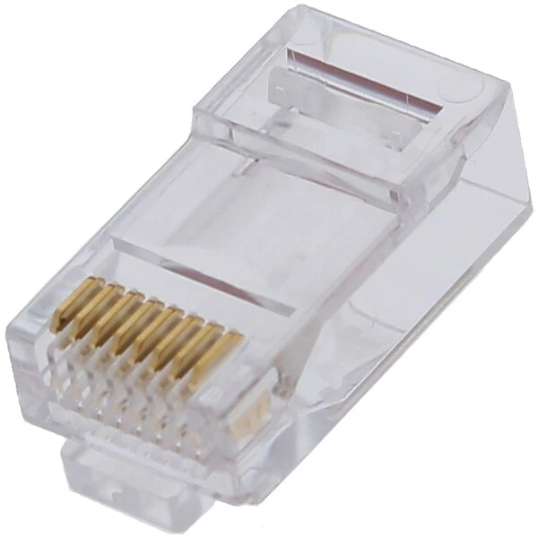 - 8 position, 8 contact RJ-45 modular plug for CAT6, 100 ohm balanced twisted pair 250 MHz cables