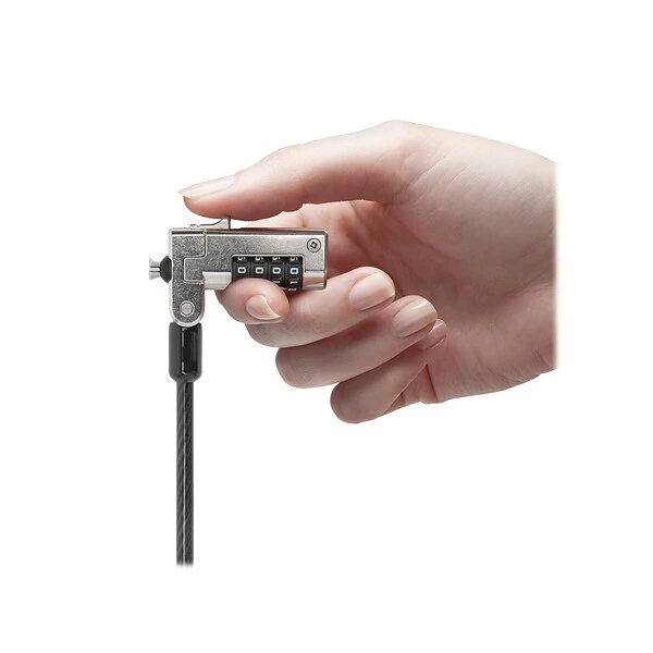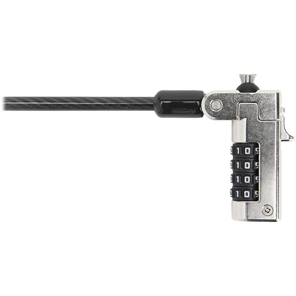 The improved N17 combination cable lock for wedge slots delivers increased strength in a smaller size. It’s the strongest keyless locking solution for laptops and tablets with a wedge lock slot, independently verified and tested for industry-leading standards in torque/pull, foreign implements, lock lifecycle, corrosion, and other environmental conditions. The N17 combination cable lock for wedge slots features a stronger cable with greater pull strength, an updated slider for easy one-handed engagement of the lock, and a resettable 4-wheel number code that can be set to any of 10000 possible combinations.