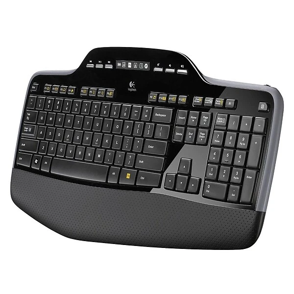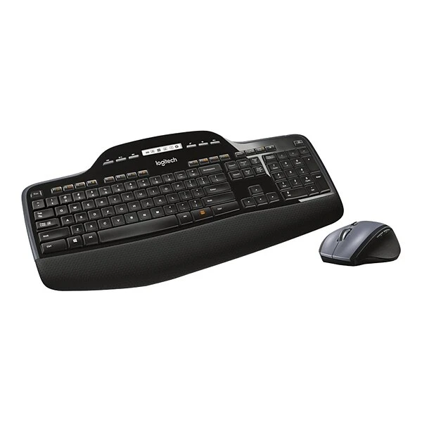 Customize your workstation with this Logitech full-size wireless keyboard and laser mouse combo. The Logitech Unifying receiver connects both the keyboard and mouse using only one computer port, freeing up other USB ports for external hard drives or other devices. A frictionless scroll wheel and sculpted design make the mouse comfortable and easy to operate. Rest easy between typing sessions with the keyboard’s cushioned palm rest. Slightly rounded keys keep your fingers positioned for smooth, fast typing, while shortcut keys let you quickly access various computer features. This Logitech full-size wireless keyboard and laser mouse combo is compatible with Windows-based PC systems for seamless operation.