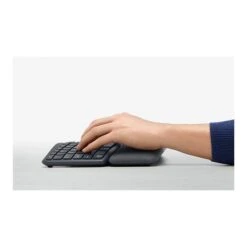 Type more naturally with ERGO K860 – an advanced ergonomic keyboard that promotes a more relaxed typing posture – reducing wrist bending by 25% and offering 54% more wrist support. The curved, split keyframe reduces muscle strain on your wrists and forearms. And the pillowed wrist rest offers comfort and the optimal ergonomic position. The adjustable palm lift feature keeps your wrists in a natural posture, whether you’re seated or standing. You’ll confidently type on Perfect Stroke keys – crafted for precision and fluidity. And an integrated numpad, multi-device capabilities, and two-year battery life ensure that you won’t compromise performance for ergonomics.