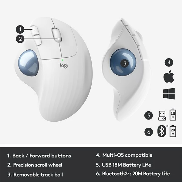 - Up to 18 months of use from a single AA battery with the USB receiver. You may even forget your Logitech wireless trackball uses batteries at all