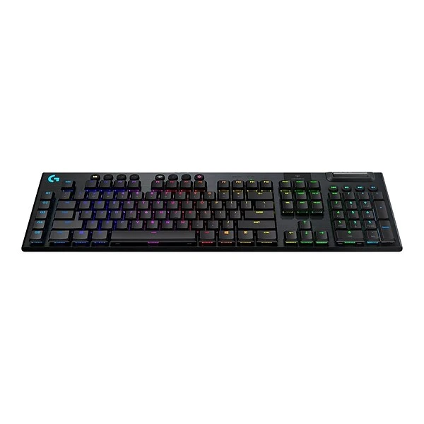 G915 is a wireless mechanical gaming keyboard with 3 selections of low-profile GL switches and pro-grade 1 ms LIGHTSPEED wireless. Capable of delivering 30 hours of non-stop gaming on a full charge. Fully customizable per-key, LIGHTSYNC RGB technology also reacts to in-game action, audio and screen color as you choose. With a sleek, impossibly thin yet durable and sturdy design, G915 brings gamers to a higher dimension of play. Programmable G-keys let you create and execute complex actions simply and intuitively and the volume wheel and media keys give you fast, easy control over video, audio, and streaming.