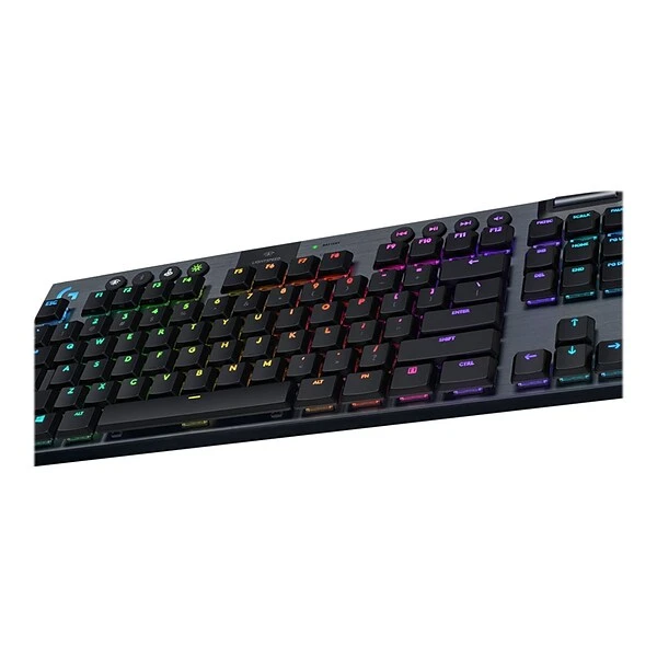 G915 TKL is a wireless mechanical gaming keyboard with three selections of low-profile GL switches and pro-grade 1 ms LIGHTSPEED wireless. Capable of delivering 40 hours of non-stop gaming on a full charge. Fully customizable per-key, LIGHTSYNC RGB technology also reacts to in-game action, audio and screen color as you choose. With a sleek, impossibly thin yet durable and sturdy design, G915 TKL brings gamers to a higher dimension of play. Dedicated volume wheel and media keys give you fast, easy control over video, audio, and streaming.