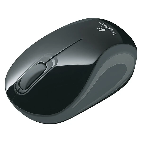 Improve tracking speed and cursor accuracy for faster productivity with this ambidextrous optical wireless mini mouse. Featuring an advanced optical tracking sensor with a resolution of 1,000 dpi, this mouse offers smooth, precise tracking for faster navigation. This Logitech M187 wireless mini mouse fits comfortably in either hand with its ergonomic ambidextrous design and lasts for up to six months of use on a single AAA battery. The Logitech M187 Wireless Mini Mouse lets you carry full-size performance in your pocket or carry-on bag. Its high-resolution optical sensor ensures smooth tracking, while its ergonomic design provides support. Enjoy the compact convenience of wireless connectivity when space is at a premium. The tiny nano receiver plugs into your laptop’s USB port. Don’t worry about recharging the battery, because a single AAA battery can power your mini mouse for months.
