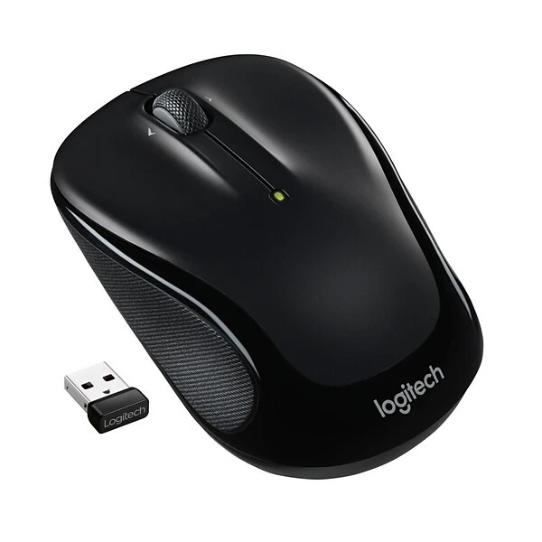 Reduce the clutter on employees’ desks with the help of this Logitech M325 black ambidextrous wireless optical mouse. Pre-installed with AA batteries that last up to 18 months, the mouse connects to computers with a small USB receiver. A lightweight and compact design makes the mouse easy to transport, perfect for use with laptop computers in or out of the office. A sleek design gives the mouse a professional appearance ideal for use in a business setting.