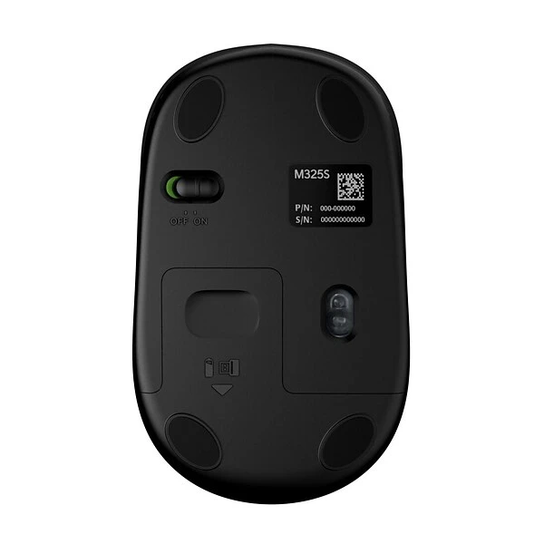 The M325 mouse comes with a Logitech unifying USB receiver that provides quick setup and a strong signal for uninterrupted use. The box also includes one pre-installed AA battery to power the mouse, as well as product documentation.