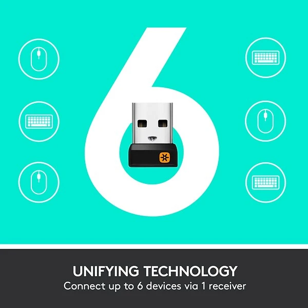 - Wireless Freedom: One tiny unifying receiver pairs up to 6 compatible devices, creating a clutter-free workspace; the USB receiver provides a strong, reliable connection within up to 33 feet (3)