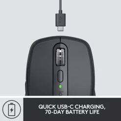 - USB-C QUICK CHARGING: Stay powered up for 70 days on a full charge. Quick charging gives you three hours of use in just one minute. Charge and work simultaneously with a USB-C cable