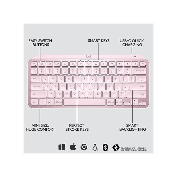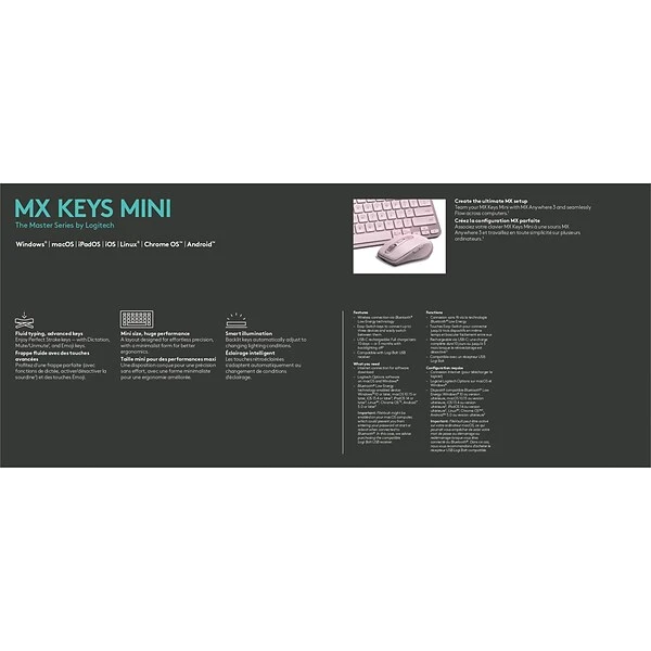 Introducing MX Keys Mini – a smaller, smarter, and mightier keyboard made for creators. Type with confidence on the keyboard crafted for efficiency, stability, and precision. The ergonomic design aligns your shoulders, allowing you to place your mouse closer to your keyboard for less arm reaching, more comfort, and improved body posture. Easily pair MX Keys Mini via Bluetooth Low Energy with up to three devices. Smart keys (requires Logitech Options software, available for Windows and macOS) transform the way you work, with a dictation key to talk-to-text with the press of a button, an emoji key to instantly open your emoji window, and a microphone mute/unmute button for smooth video calls. Team up with a Flow-enabled MX Master 3 or MX Anywhere 3, and type on multiple devices in one fluid workflow. Transfer files, documents, and images across computers and macOS and Windows. Not compatible with Logitech Unifying receiver technology. The dictation feature is provided by Windows and macOS and is currently only available in select languages and geographies. Learn more at Logitech Support OS dictation.