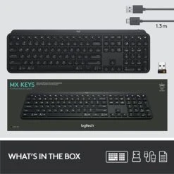 Introducing MX Keys, an advanced wireless illuminated keyboard crafted for efficiency, stability, and precision. Perfect Stroke keys are shaped for your fingertips, and increased key stability reduces noise while optimizing responsiveness. Tactile reference for hand positioning makes it easy to stay oriented and in your flow. The backlit keys light up the moment your hands approach and automatically adjust to suit changing lighting conditions. MX Keys follows your MX Master 3 – or another Flow-enabled mouse – from one computer to another, meaning you can type on multiple devices in one fluid workflow. With MX Keys you can truly master what you make.