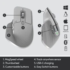 MX Master 3 is instant precision and infinite potential. Designed for designers and engineered for coders, it’s our most advanced Master Series mouse yet.The electromagnetic MagSpeed wheel is our quietest scrolling yet that provides up to 90% more speed (1) and 87% more precision (2).App-specific button customizations speed up your workflow in the apps you use most (3). 4000 DPI Darkfield sensor means you can track virtually anywhere – even glass (4). It’s faster and 5x more accurate than the basic mouse (1).Your hand rests perfectly on the sculpted form and Flow allows you to work across multiple computers and operating systems – and transfer files, images, and folders in one fluid workflow (3).Ready for video calls – predefined settings for Microsoft Teams and Zoom let you instantly mute and Start/Stop your video call (3)With MX Master 3, you can truly master what you make.