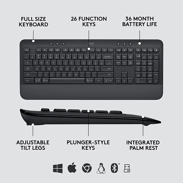 - Long Battery Life: The Signature MK650 Combo for Business includes a AA battery for the mouse that lasts up to 24 months and 2 AA batteries for the keyboard which last up to 36 months