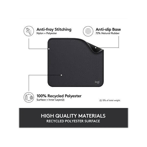 The Logitech Studio Series mouse pad is a soft, smooth, nonslip mouse pad that lets you glide away with your favorite Logitech mouse. The fine weave cuts the friction, so your mouse glides effortlessly and silently, while the spill-proof coating withstands accidental mishaps. The rubber anti-slip base prevents sliding on any surface, keeping a firm hold on your desk no matter what. Fresh color and modern design make it the perfect accessory for your Logitech mouse.