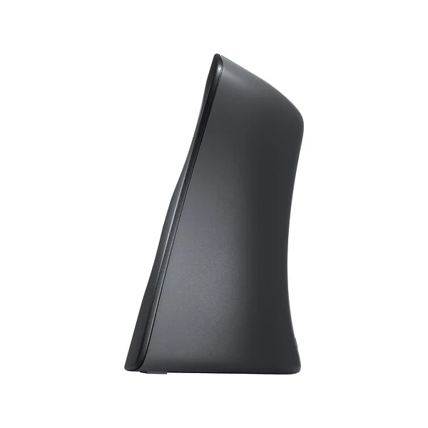 The speakers come with a wired remote control, which allows you to control volume or mute with the touch of a button, rather than through your computer. The remote also has a headphone jack, ideal for shared spaces where sound is an issue. The angled design on the speakers also directs sound upward, directly toward the user providing an immersive sound experience.