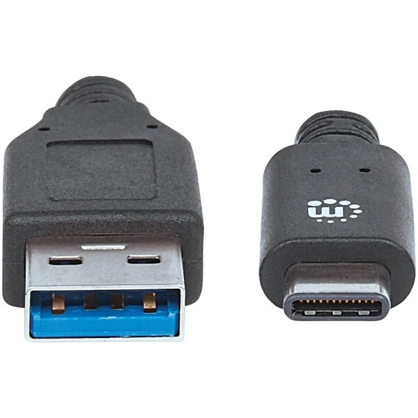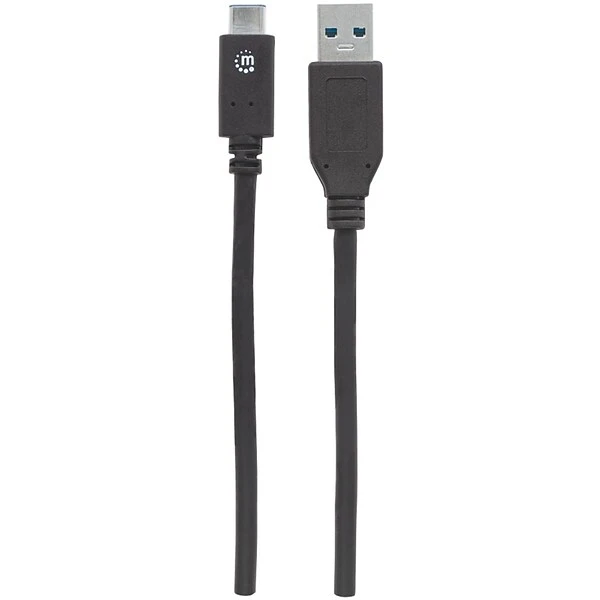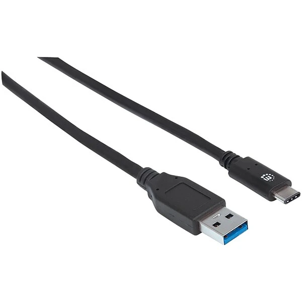 The Manhattan USB-C Male 3.0 to USB-A Male 2.0 Cable easily connects USB-A peripherals and accessories with USB-C device ports. Ideal for use with any USB-A, plug and play devices, the cable supports data transfer rates up to 10 Gbps on Windows and Mac systems for fast, reliable transmissions and current up to 3 amps. Nickel-plated contacts, shielding and fully molded boots with strain relief help provide dependable connections, maximum conductivity and minimal data loss with reduced EMI interference. This is a 3 ft. cable.