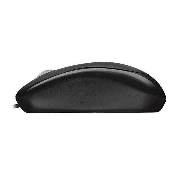 The black body of the Microsoft basic optical mouse is molded to fit easily in either hand, making it ideal for large offices that would otherwise need special left-handed requirements. Its narrow midsection and flared ends promote a more ergonomical grip.