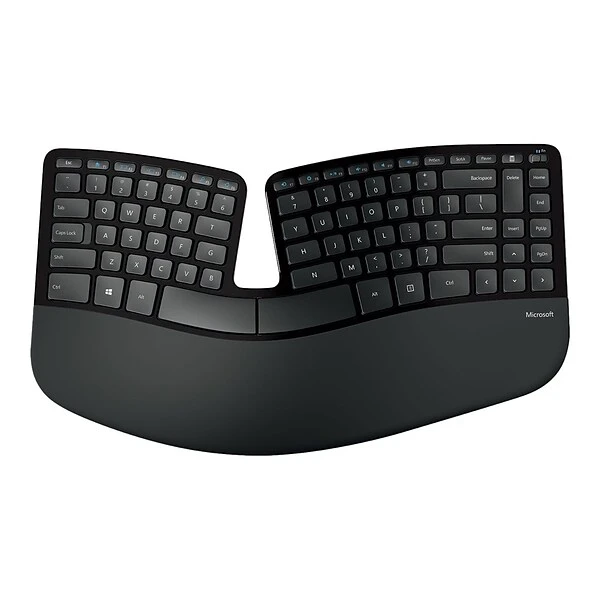 The Microsoft Sculpt keyboard has an ergonomic design for long-lasting comfort as you work. The split keyboard layout helps keep wrists and forearms in a relaxed position, while the cushioned palm rest provides wrist support to minimize fatigue. The domed keyboard shape can reduce and correct wrist pronation to reduce strain.