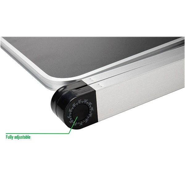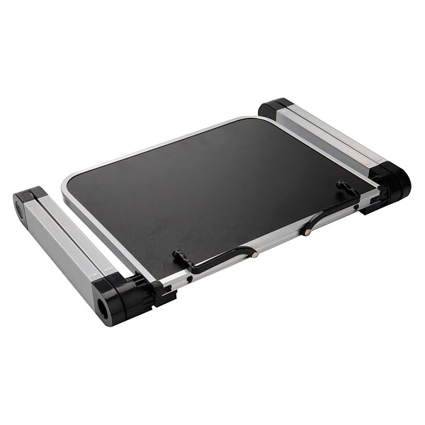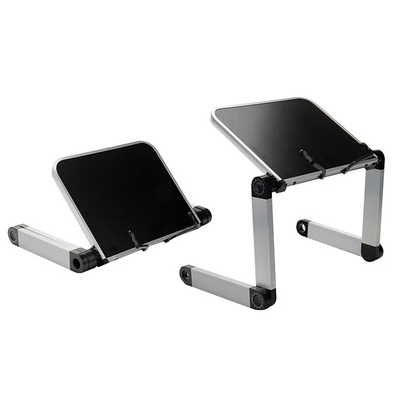 Balance your studies with ease using this Mind Reader adjustable bookstand. Take a load off your lap by putting this bookstand to use for work, crafting, or studying. This versatile, multifunction solution allows you to work or study in bed, on the couch, or even on the floor. Anywhere you need a flat, stable surface, you’ll want this durable lap desk and bookstand with you. Unfold the legs for an elevated desk that fits over your legs, or fold them flat underneath. Use the buttons on the legs to arrange the stand in various positions for your comfort and convenience. Designed with your comfort and accessibility in mind, this convenient lap desk can either lay flat across your lap or stand freely with the legs unfolded. The material provides sturdy support for your books, breakfast, laptop, or even a handheld game console. Integrated holders at the bottom hold your place in books of all sizes; they can also be used to secure a laptop, sketchbook, handheld gaming console, or tablet. Its lightweight, reliable construction and ability to fold flat make it ideal for packing in a suitcase or carry-on baggage when you’re on the go. When you finish, easily store the collapsed stand in drawers, under the bed, or beside your desk. Buy a bookstand from Mind Reader, and take the strain out of reading or working from the couch or bed.