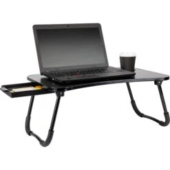 Balance your breakfast with ease using this Mind Reader adjustable lap desk. Too many lap desks provide awkward, uncomfortable attempts at a flat surface. The Mind Reader lap desk can switch between flat and freestanding for your comfort and convenience. Enjoy a versatile, multifunction solution that allows you to work or eat in bed, on the couch, or even on the floor. Anywhere you need a flat, stable surface, you’ll want this durable lap desk on hand. Designed with your comfort and accessibility in mind, this convenient lap desk can lay flat across your lap. You can also unfold the legs underneath to create a freestanding work surface. The lightweight material provides sturdy support for your books, breakfast, laptop, or even a handheld game console and includes a slot to prop up your phone, along with a cup holder for drinks. Underneath the desktop, you’ll find a handy storage drawer for essentials. A sturdy, lightweight construction and integrated carry handle make the whole desk ultra-portable. The whole unit can easily be stored in a closet, under the bed, or beside a couch or a love seat for easy access. Buy the lap desk and take the strain out of reading or working from the couch or bed.