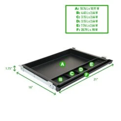 - Overall dimensions: 1.75″H x 21″W x 16″D