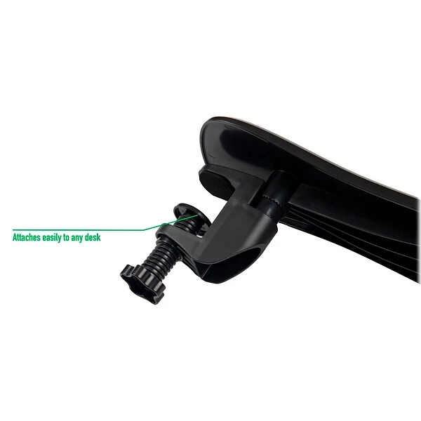 - Easily adjusts: screw the clamp loose, and adjust to a different part of desk or table