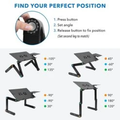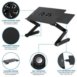 The MI-7211 laptop tray with cooling fan is portable, and lightweight, perfect for travel or at-home use with an attachable mouse tray. The height-adjustable design can turn your desk into a sit-stand design for better circulation and blood pressure. Change the angle with ease to set your screen at the perfect position and reduce glare and eye strain. The large range of motion allows the tray to angle to suit a sitting, lying down, or standing position. The cooling fan tray, powered by USB, will help keep your laptop operating at better temperatures.