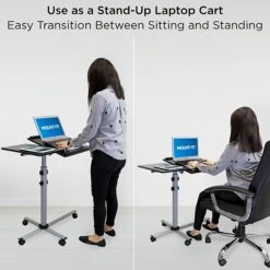 The MI-7945 is a versatile mobile trolley that can be used as a presentation cart, laptop workstation or a projector stand. Two large platform surfaces provide ample space for a full-sized laptop with mouse and a projector for presentations. Each platform is height adjustable and comes with 35 degrees of tilt angle adjustment to provide comfort and positioning of the projector for your needs. Locking wheels and a large base provide mobility and stability to this mobile workstation. Moving it from location to location is very easy, yet it is stable during use. Larger platform also includes stoppers on both sides to prevent your laptop or mouse from sliding off.