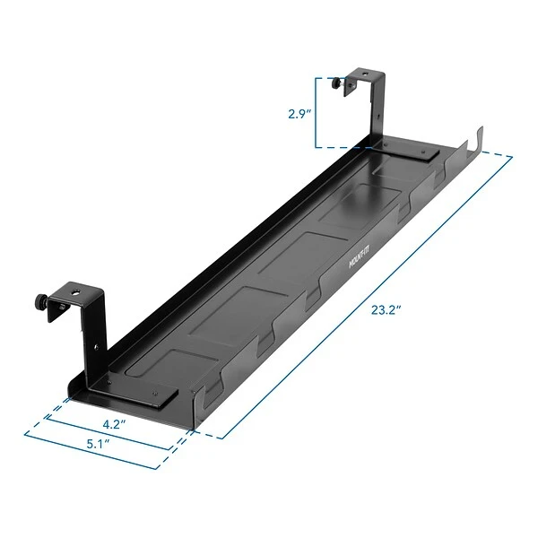 The Mount-It! MI-7282 under-desk management system is manufactured to provide you with an easy-to-place, hang, and adjust platform for your wires. Featuring multiple cutouts along the edge and open ends for cable pass-through, your cords stay discreetly hidden but still easily accessible. You’ll be able to store wires away without taking up additional room on your desktop. Hang on the crossbar of a sit-stand desk, or attach directly to your desktop where you need it. This tray makes optimal use of the space under your desk, giving you the freedom to place more important things around your workstation.