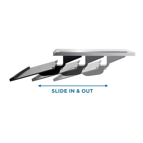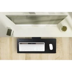 Mount-It! Under Desk Keyboard Tray and mouse platform saves you space and helps improve ergonomics at your desk. Maximize your workplace comfort while getting the support you need. This keyboard and mouse tray is adjustable. Tilt angle adjustment features of our keyboard tray allows you to position your elbows and wrists at the optimum angle. It can also swivel left and right for easy maneuvering and increased comfort. The tray positions your keyboard and mouse lower and closer to your body, allowing you to adopt and maintain a neutral working posture. Moving and adjusting the under desk keyboard tray is a breeze. Simply turn the knob to adjust the tilt angle (negative, neutral or positive position). Re-tighten the knob to lock the position.
