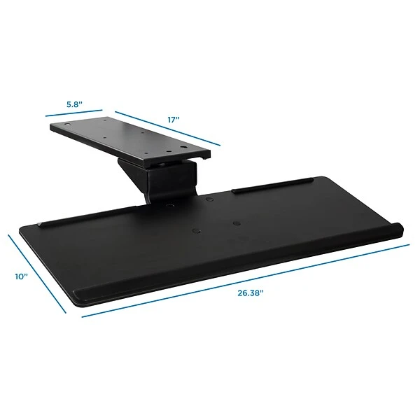 - Keyboard tray measures 26.38 inched wide by 10 inches deep