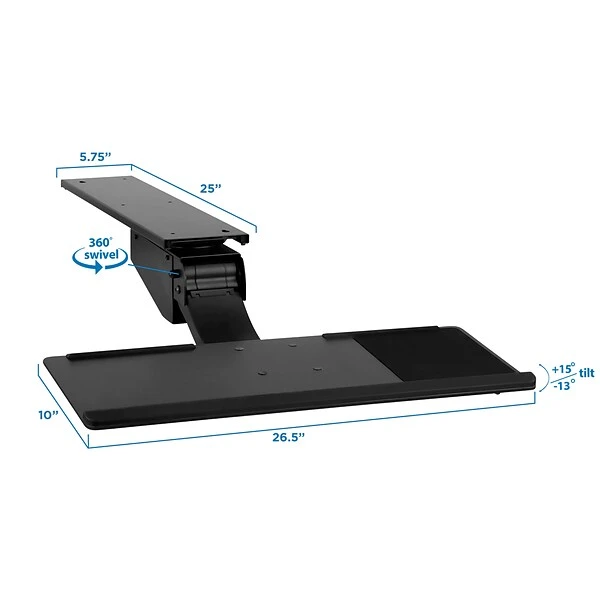 - KEYBOARD PLATFORM DIMENSIONS: 26.5″ L x 10″ D