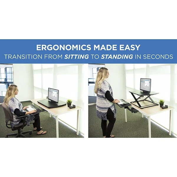 The Mount-It! MI-7139 Sit Stand Full Motion Keyboard Tray is the perfect keyboard platform to compliment any Mount-It! tabletop sit stand converter. The under-desk design has up to 13.4″ of vertical height adjustment so you can quickly raise the keyboard tray from a sitting to standing position to match the height that you might raise your monitor to using the sit stand on your tabletop. The keyboard platform slides back underneath your desk so it’s completely out of the way.