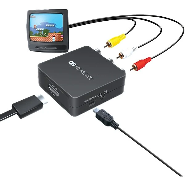 The My Arcade Retro Converter for HDMI to Composite is a great solution to older TVs with no or limited HDMI inputs. It includes everything you need to add an HDMI input to a TV. It is easy to install and produces a clear picture.