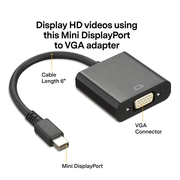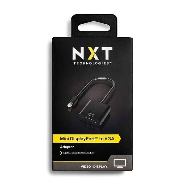 Use your existing VGA display while maintaining high-definition video quality with this adapter. The simple design and included instructions allow easy setup. This NXT Technologies Mini DisplayPort to VGA adapter works with a range of video output and video input devices for convenient compatibility.