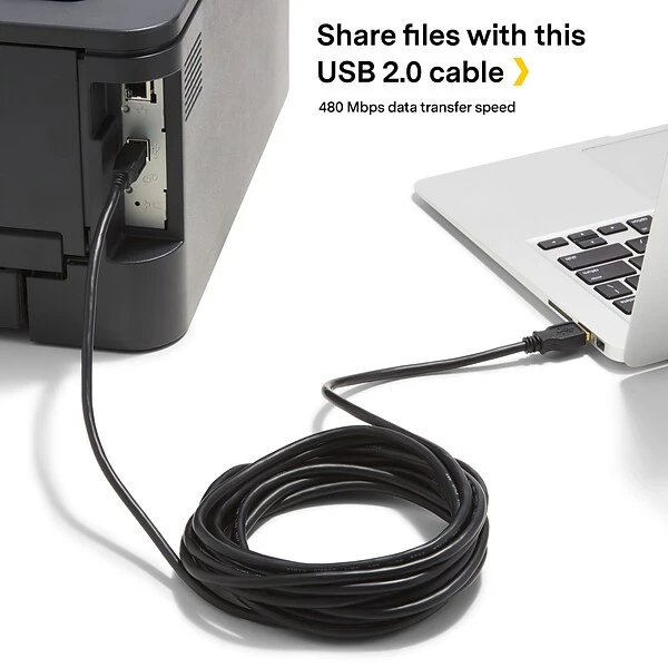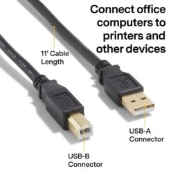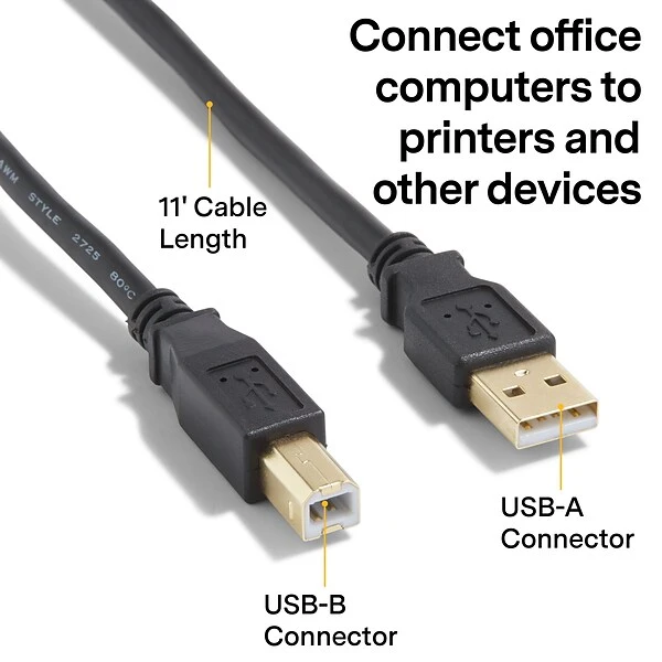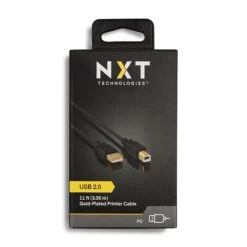Transfer data from printers, scanners and cameras to your computer with this USB cable. The gold-plated connectors provide fast and reliable conductivity. This NXT Technologies 11-foot black USB 2.0 A/B cable is long enough to connect devices across work areas for an organized communal office.