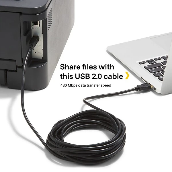Share files with this USB 2.0 cable. The USB-A and USB-B connectors are compatible with a variety of computers and office equipment, and the 16-foot length offers flexible placement. This NXT Technologies USB 2.0 cable supports speeds as fast as 480Mbps for rapid transfers.