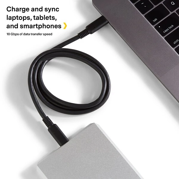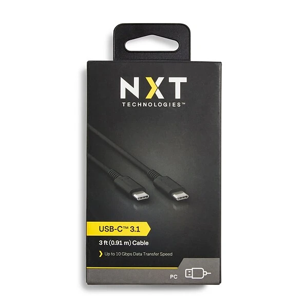 Charge and sync laptops, tablets and smartphones with this USB-C cable. The 3-foot length offers flexible placement options, while data transfer speeds of up to 10Gbps support rapid file sharing. This NXT Technologies USB-C to USB-C 3.1 cable features a reversible connector for hassle-free connection and delivers up to 100 watts of power for quick, efficient charging speeds.
