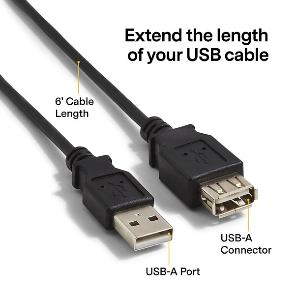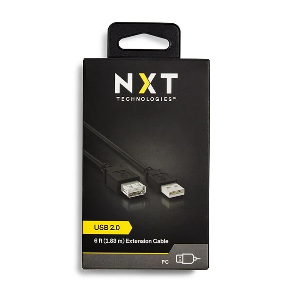 Transfer files quickly with this USB 2.0 extension cable. The USB-A connectors are compatible with a variety of devices, and the 6-foot length helps you reach computers and printers. Capable of data speeds of up to 480Mbps, this NXT Technologies USB 2.0 extension cable lets you retrieve files fast.