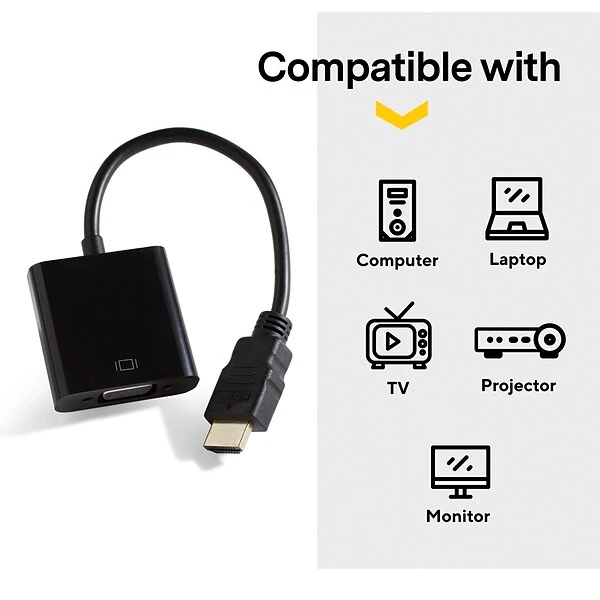 Increase the viewing area of your VGA-equipped computer or laptop with an HDMI-capable television or projector using this adapter. The male and female connectors on either end permit easy setup with an assortment of devices. This NXT Technologies VGA to HDMI adapter features a compact all-in-one design.