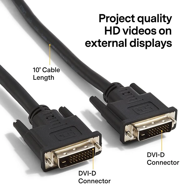 Project quality HD videos on external displays with this NXT Technologies 10-foot black DVI-D cable.