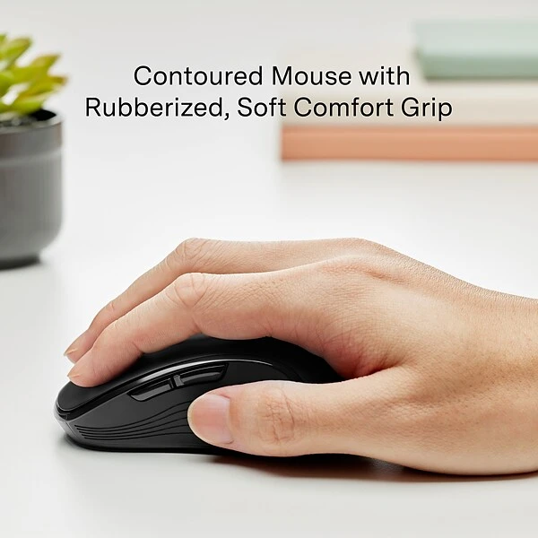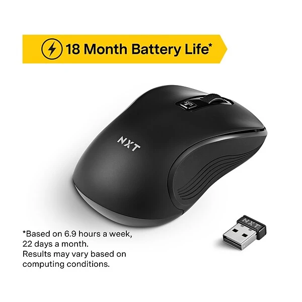 Get more done at the office with this wireless optical mouse. Supported resolutions of up to 3200 dpi grant precise cursor control and reliable tracking, and the 2.4GHz wireless connectivity ensures a stable and reliable wireless connection of up to 23′. The battery-saving sleep mode helps extend battery life when the mouse is not in use. This NXT Technologies™ wireless optical mouse boasts a rubberized soft comfort grip that keeps your palm feeling comfortable even with long hours of use.